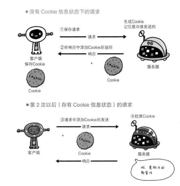 HTTP/1.1虽然是无状态协议,但为了实现期望的保持状态功能,引入了Cookie技术。有了Cookie再用HTTP协议通信,就可以管理状态了。