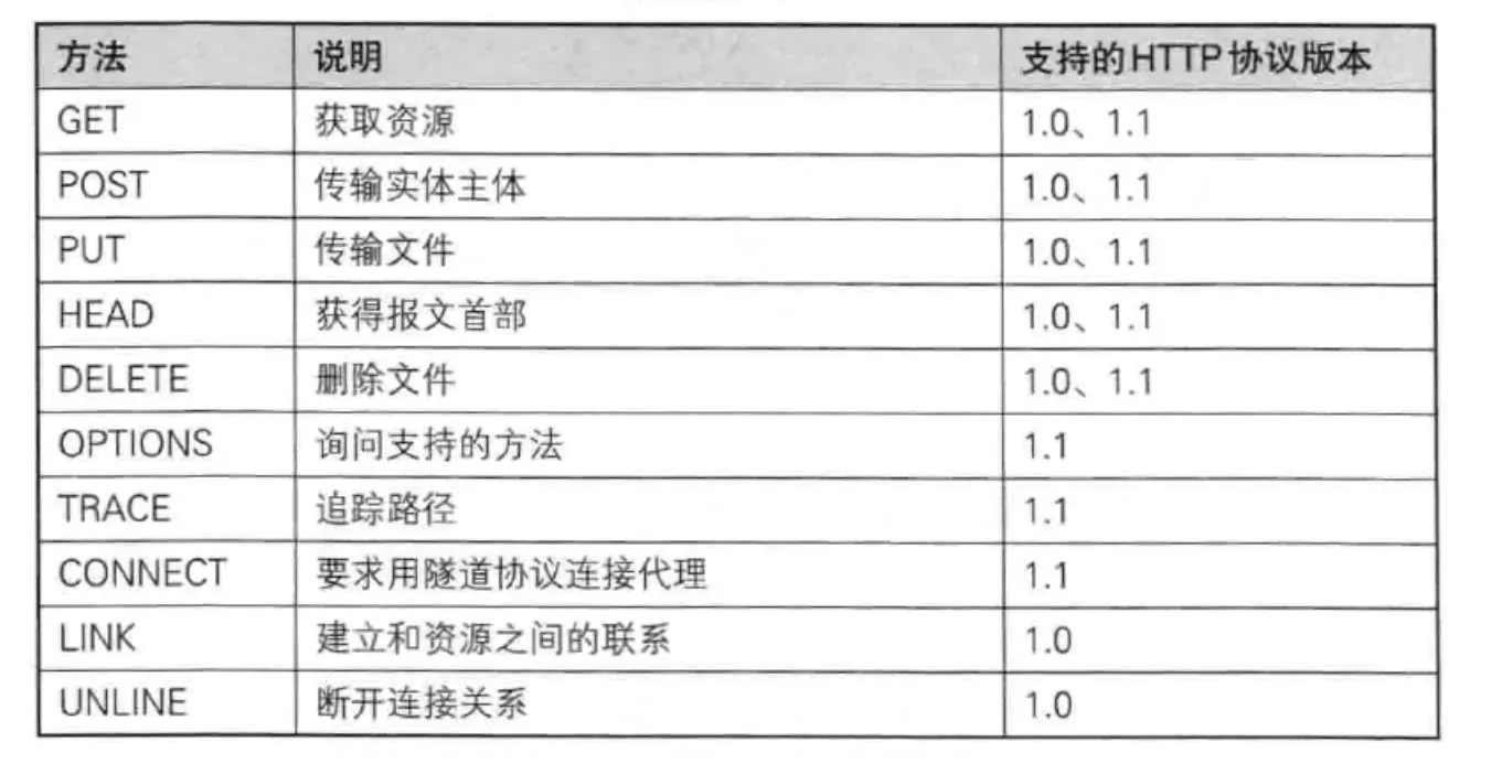 HTTP/1.0 和 HTTP/1.1支持的方法