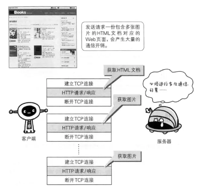 HTTP协议的初始版本中,每进行一次HTTP通信就要断开一次TCP连接,增加了通行量的开销。