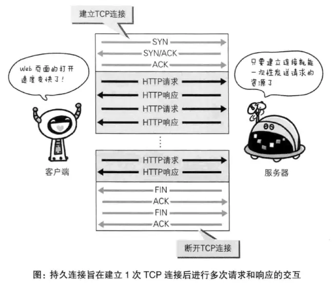 持久连接的特点是,只要任意一端没有明确提出断开连接,则保持TCP连接状态。