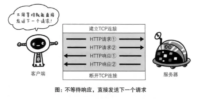 持久连接使得多数请求以管线化方式发送成为可能。之前发送请求后需等待并收到响应之后,才能发送下一个请求。管线化技术出现后,不用等待响应就可直接发送下一个请求。