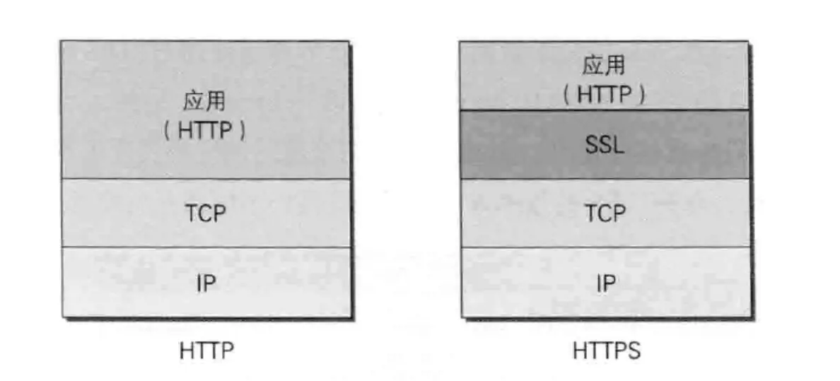 通常,HTTP 直接和 TCP 通信。当使用 SSL 时,则演变成先和 SSL 通信,再由 SSL 和 TCP 通信了。简言之,所谓HTTPS,其实就是身披 SSL 协议这层外壳的HTTP。