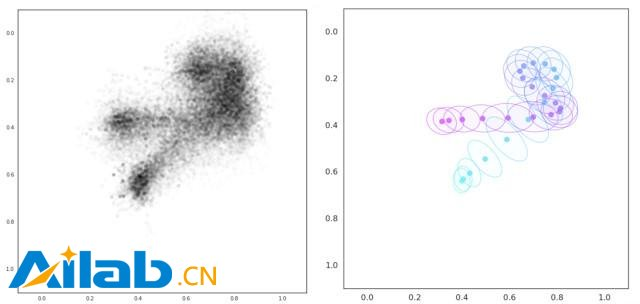 对应单词“可以could”(左)的原始数据点,以及每个采样方差(右)的归一化采样轨迹
