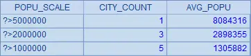 | 4 | =A3.new(A2(#):POPU_SCALE,~.count():CITY_COUNT, int(~.avg(POPULATION)):AVG_POPU) |