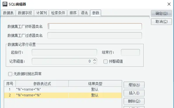 与此同时定义,对应数据集sql的参数接入方式,即定义数据集参数,如下: