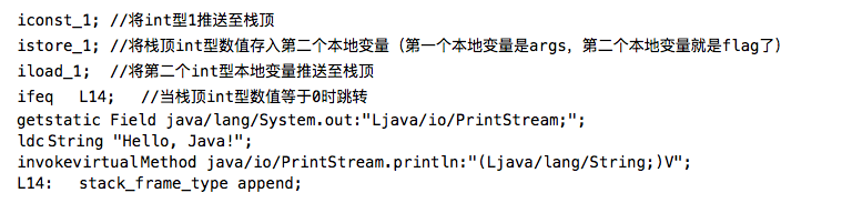 其实这个文件就是一系列字节码指令的集合,上面 main 方法中的字节码指令我们可以分两部分来看。接下来我们一部分一部分来分析: