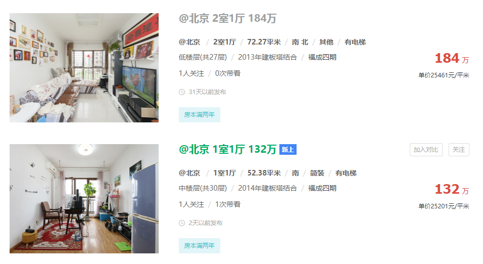 写一个爬虫最开始当然要想清楚需要获取什么样的数据了。本次项目对与二手房相关的数据都比较感兴趣,可以自然的想到,每个房源链接的具体详细信息是最全的。但考虑到爬虫深度影响整体爬虫效率问题,并且房源列表中数据已经能够满足基本的要求,并没有必要对每个详细链接进行深入的爬取,因此最终选择爬取房源列表。以下是房源列表(部分截图)中的房源信息: