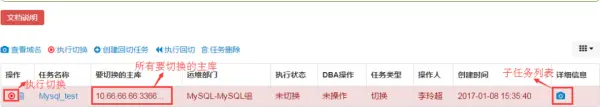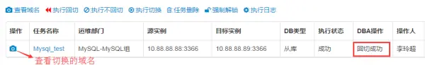 切换成功的任务会显示回切按钮,DBA可以执行回切,并查看回切的具体信息。