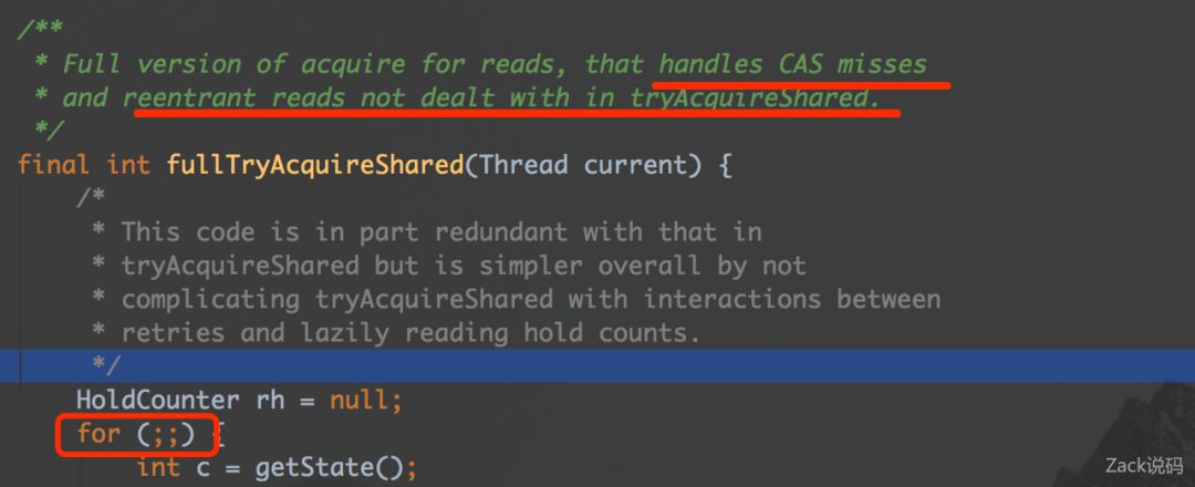 其实这个方法就是用for循环轮询解决CAS丢失和重入失败的问题,具体代码不细过了,有兴趣可以自己找源码看看。