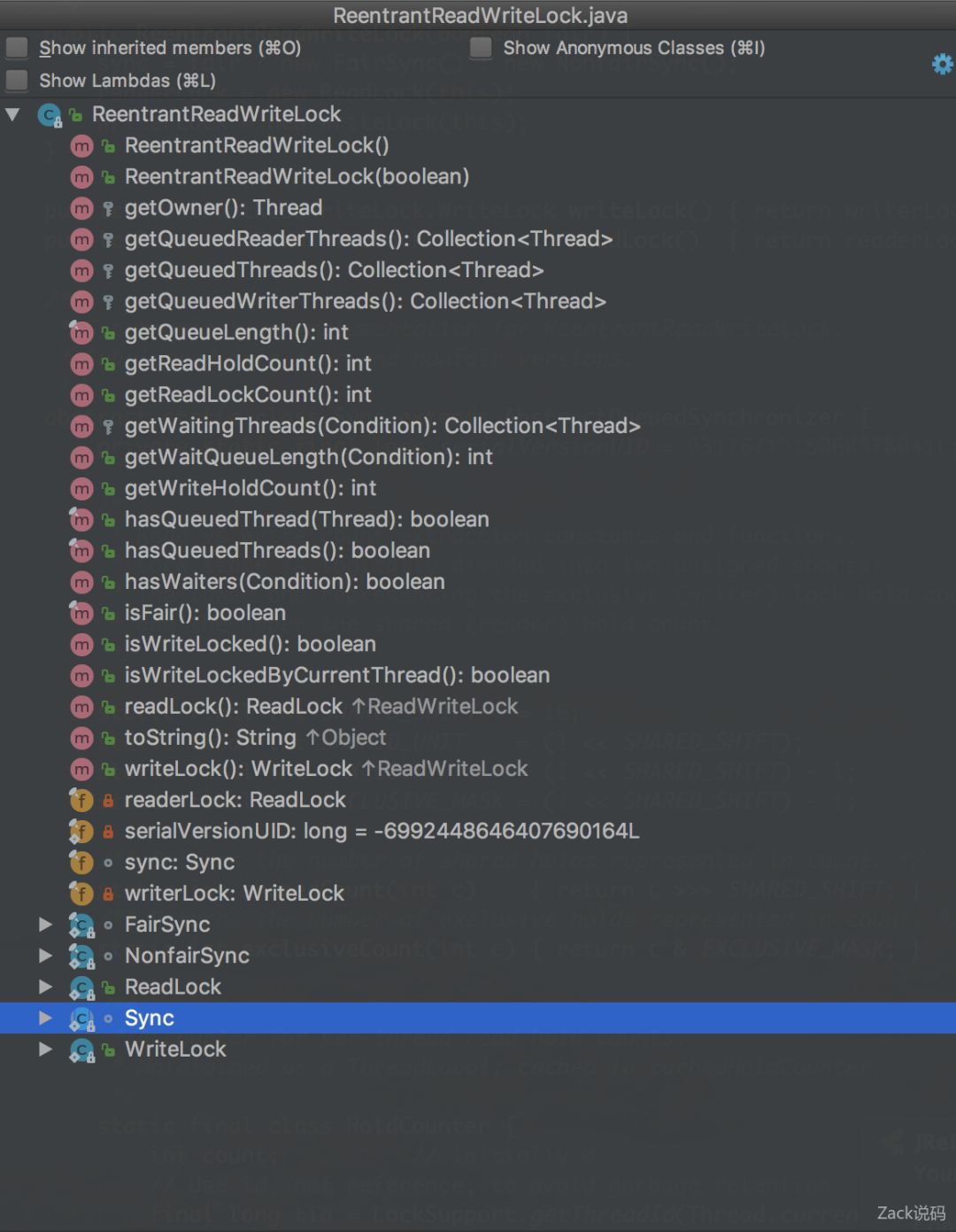 看下ReentrantReadWriteLock的file struture