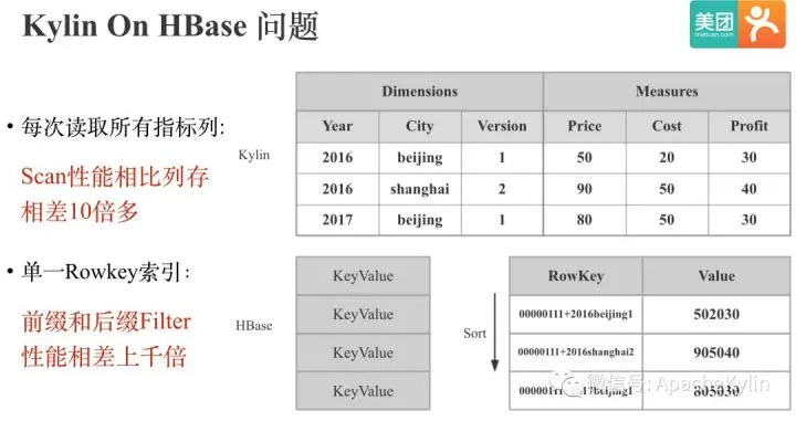 所以,要解决 Kylin On HBase Scan 和 Filter 效率低下的问题, 我们就需要为 Kylin 增加一个列存,有高效索引的存储引擎。