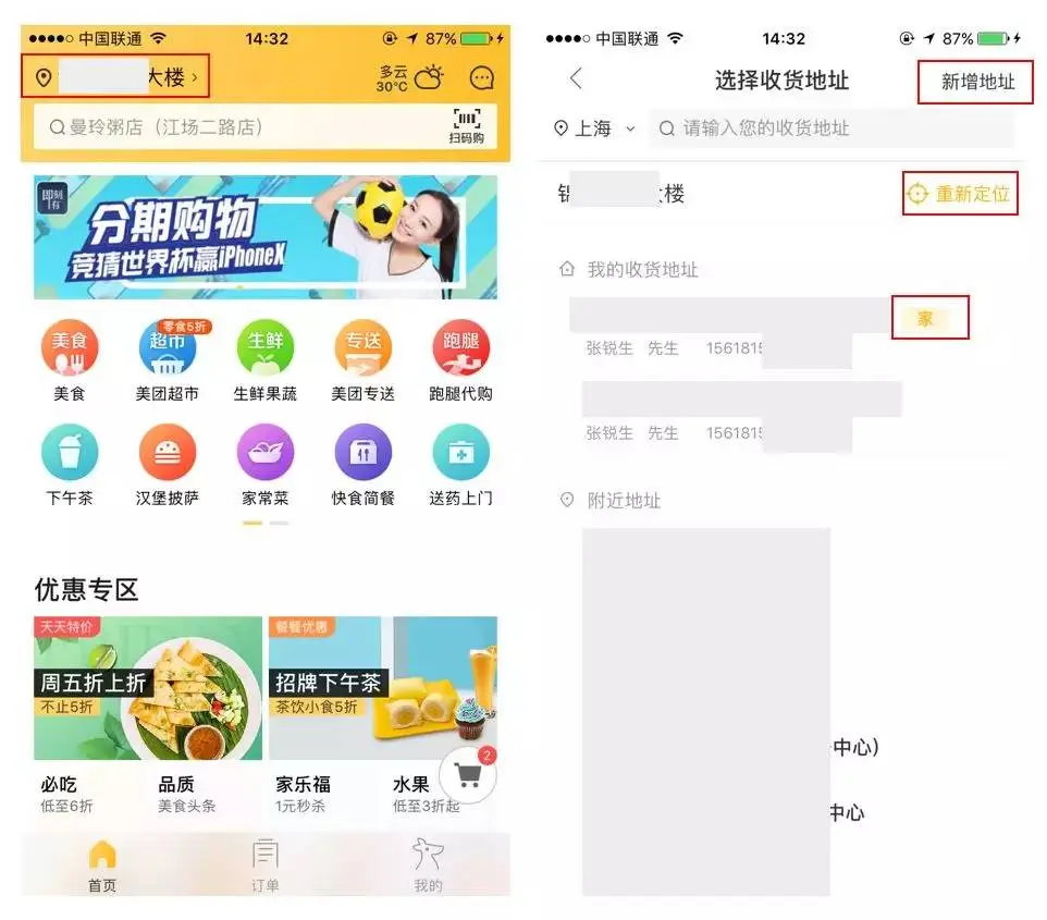 定位功能相信大家都很熟知了,在获取用户的定位授权后,产品可以根据定位范围提供相应的服务,功能很常见,比如电商类、团购类、社交类(做社区)等;用户每次进入产品首页都会刷新定位,一般都很精准,用户除非需要更改定位才会想到要去点击它。定位功能常见于首页搜索框左侧,但是发展来看首页对于某些产品来说是寸土寸金,比如电商类和社交类产品,用户一般会在个人资料里添加多个收货地址,下单时直接选择地址就好,不需要用户常去更改定位,所以现在首页定位入口干脆隐藏掉了;而对于团购类或是需要提供及时配送服务的产品,需要用户方便查看和更改定位,所以这类产品都将定位功能在首页予以保留,下面就来举2个例子说明一下: