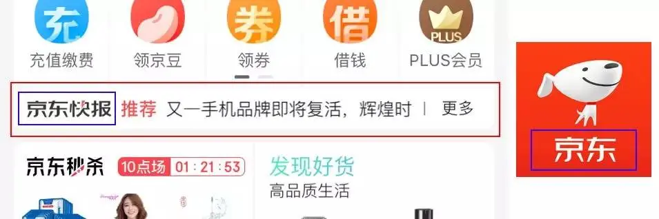 字体:这里的字体一般不会使用系统的默认字体,通常是经过设计的,会具有品牌字体相关性;比如“京东快报”字体和京东的Logo字体是有品牌关联的。