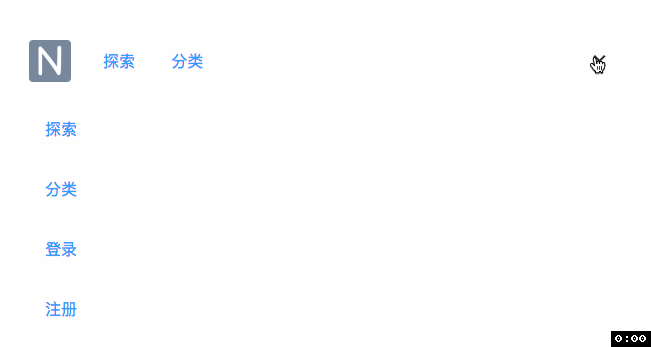 用 flex-basis: 100% 控制内容的宽度,跟 width:100% 差不多,且使用了 translateY 与 css 动画,让堆叠的按钮出现向下滑出的特效。使用 visibility 和 z-index 是为了避免遮罩住原来的导航栏。