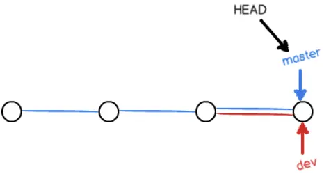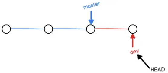 在 dev 上的工作完成之后,就可以把 dev 合并到 master 上了。当前这种情况,Git 会直接把 master 指向 dev 的当前提交,就完成了合并: