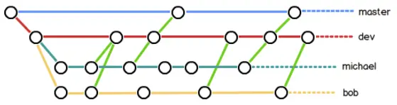 所以,团队协作的分支看起来就像这样: