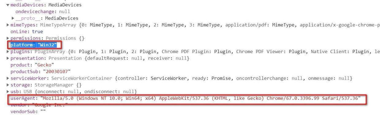 另一个重要的字段为userAgent:Mozilla/5.0 (Windows NT 10.0; Win64; x64) AppleWebKit/537.36 (KHTML, like Gecko) Chrome/67.0.3396.99 Safari/537.36
