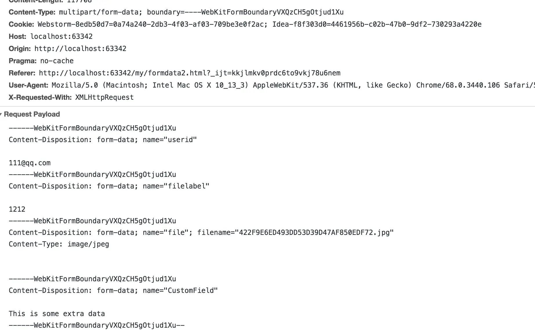 请求头为:Content-Type: multipart/form-data; boundary=----WebKitFormBoundaryVXQzCH5gOtjud1Xu