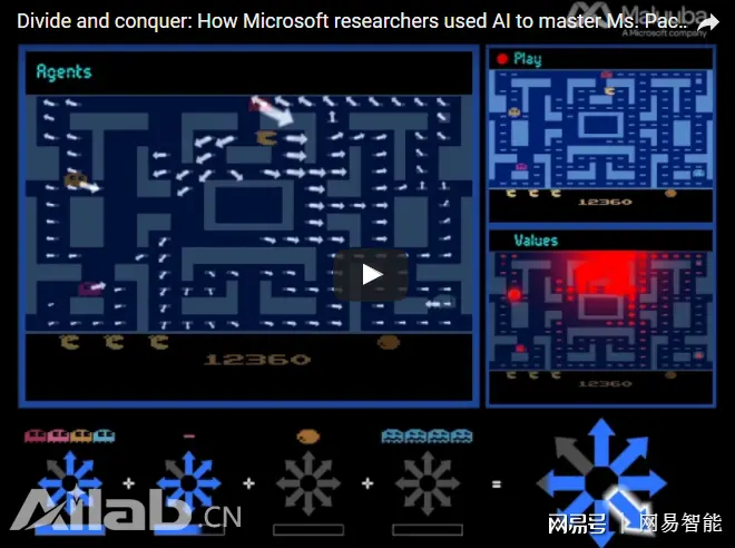 有超过100个智能代理参与其中,每个单独的代理都会根据自己关注的那个部分,来判断吃豆人应该会遵循的一套行动设定。然后,这些设定就会被汇总起来成为程序,这个程序会根据所有成果的加权平均偏好来决定吃豆人的行动。