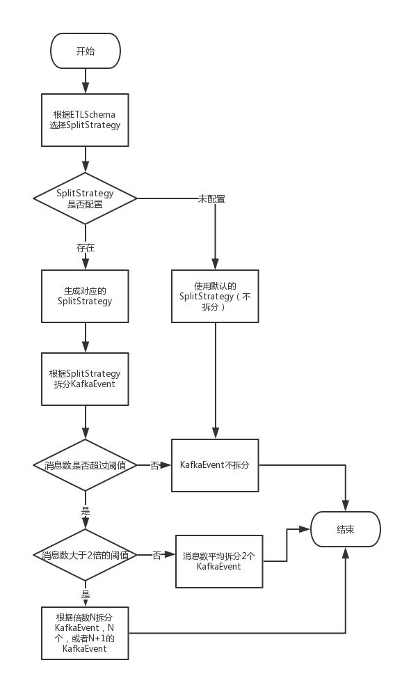 那么如何保证数据不倾斜呢?首先通过配置自定义mapper个数,并创建对应个数的ETLSplit。由于kafkaEevent包含了单个topic&partition之前消费的Offset以及将要消费的最大Offset,即可获得每个 kafkaEvent 需要消费的消息总量。最后遍历所有的 kafkaEevent,将当前 kafkaEevent 加入当前最小的 ETLSplit(通过比较需要消费的数据量总和,即可得出),通过这样生成的 ETLSplit 能尽量保证数据均衡。
