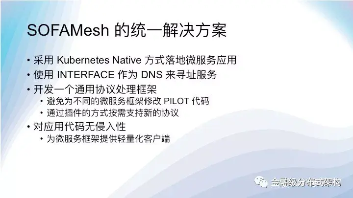 第二部分是这次分享的重点,主要介绍蚂蚁金服在集成 SOFA/DUBBO 和 HSF 这些框架的过程中碰到的问题和我们的一套通用的解决方案,希望能够加速 Service Mesh 在实际生产中的落地。