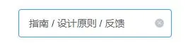 结构很简单,最外层一个span包裹所有元素,该span相对定位且inline-block,里面是一个<el-input>输入框组件,该输入框用来搜索目标内容(内容就是级联选择器的data),然后<el-input>里面一个template作为插槽存放了2个i标签,注意这里的slot="suffix"这是将这2个i标签作为具名插槽的内容插入<el-input>中的对应位置,带表了下箭头和清空输入框的按钮。然后是一个span,这个span就是下图中输入框内的文字