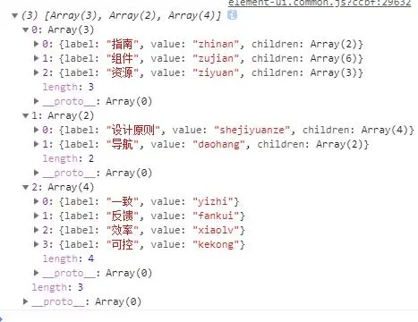 this.activeValue.splice(menuIndex, len, item.value)这句话,activeValue就是我们所选择的激活项构成的数组,上图的activeValue就是['指南','设计原则','一致'],splice是用来从数组中添加删除项目