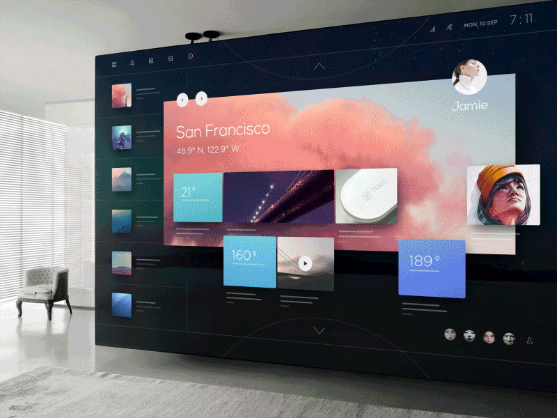我特别喜欢最后一个。它让我想起了 Windows 8 中风靡一时的“Metro Tiles”。它不仅视觉上令人印象深刻,而且非常灵活 —— 它可以在手机,平板电脑上工作,在设计师的建议下,即使在巨大的电视屏幕上或 AR 中也可以。