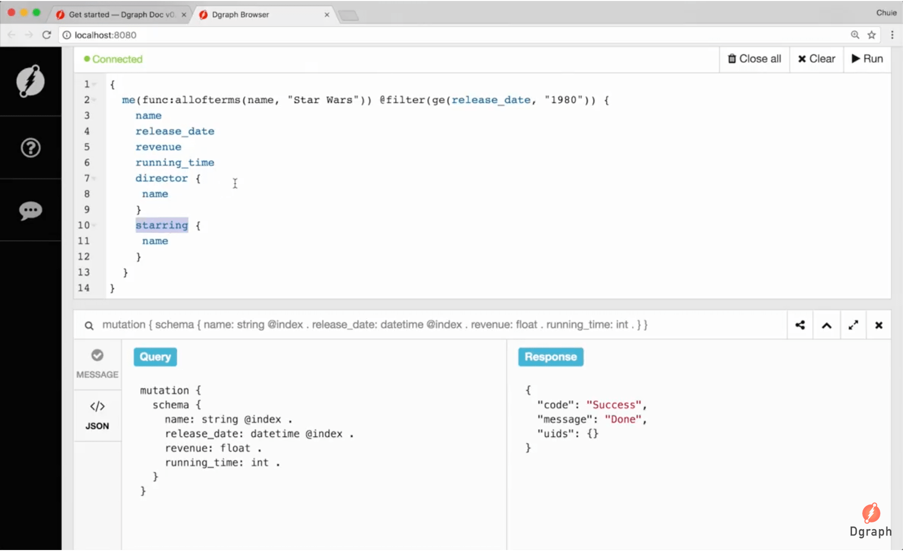 6、dgraph:开源、免费的分布式图数据库。如果你在构建用户关系系统,图数据库绝对是比关系型数据库更好的选择。通过 SPARQL 查询一个用户相关的其他用户会比 SQL 快百倍。自带图形界面、RDF 导入工具等必备工具。安装:curl https://get.dgraph.io -sSf | bash
