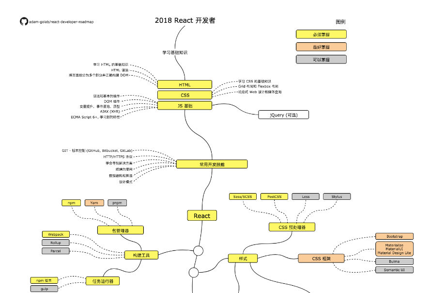 11、react-developer-roadmap:该仓库中的线路图展示了学习 React 的路径,为成为一名 React 开发者指明了方向。中文