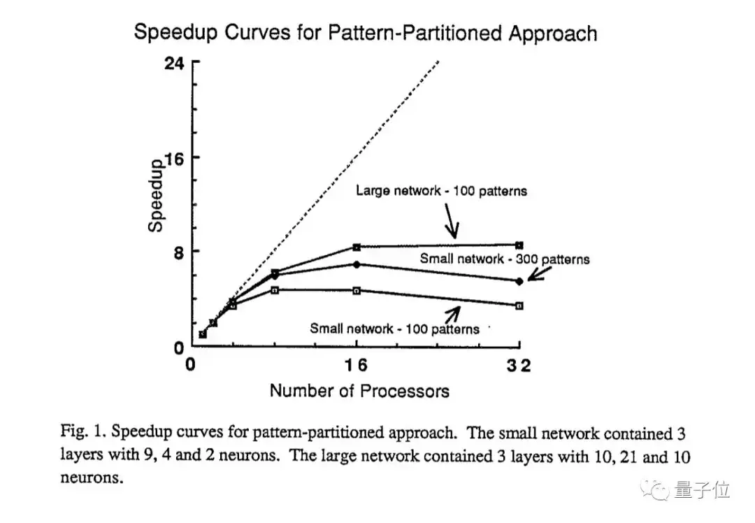 这些神经网络本身、用来测试的配置,也有有浓厚的年代感。我们从论文里能看到1990年的“大”神经网络什么样:3层、每层分别10、21、10个神经元的神经网络,就算很大了。而Jeff Dean测试用的处理器,最多达到了32个。