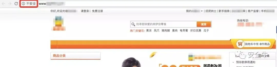 国内某知名零售品牌,登录网站时,谷歌(Chrome)浏览器会警告“不安全”字样,如果无法保证用户的购物环境更安全,那么用户输入的信息与隐私随时会有泄露的威胁。导致此电商平台的交易量相比线下交易量来说,降低30%以上。