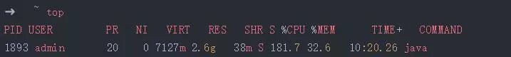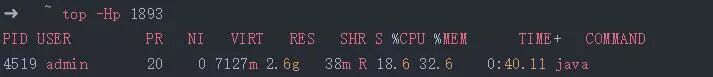 3、使用 top命令,查看具体是哪个线程占用率较高