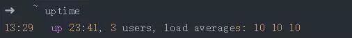 ➜ ~uptime13:29 up23:41, 3users,loadaverages: 1.741.871.97