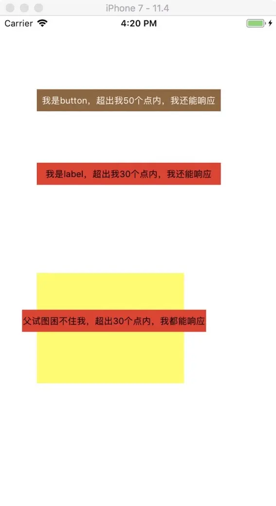 4、【注】如果要挣脱束缚,请想把view加到父view上,如[self.view addSubview:view];后才能添加enlargeEdge属性,否则不生效。demo地址https://github.com/yinjining/hitEnlarged