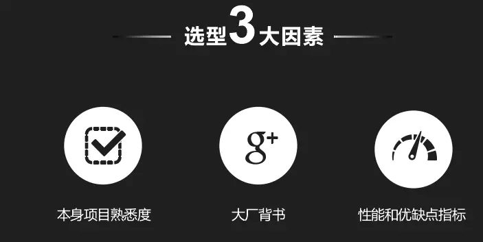 接下来讲一下有哪些因素决定我们选择一个平台,首先是本身项目熟悉度,如果项目负责人对这个平台熟悉就会选择这个平台。如果对项目不熟悉,就会选择大厂背书,用大公司一样的应用。如果前两者都没有,那么就从性能和优缺点上来评价是否适应这个系统。