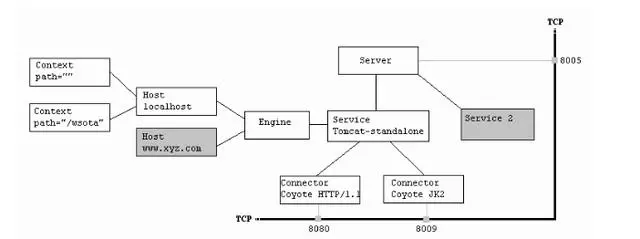 tomcat有两个典型的connector,一个用来监听浏览器的http,另一个是用来监听webservice