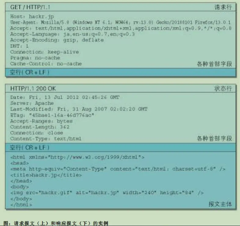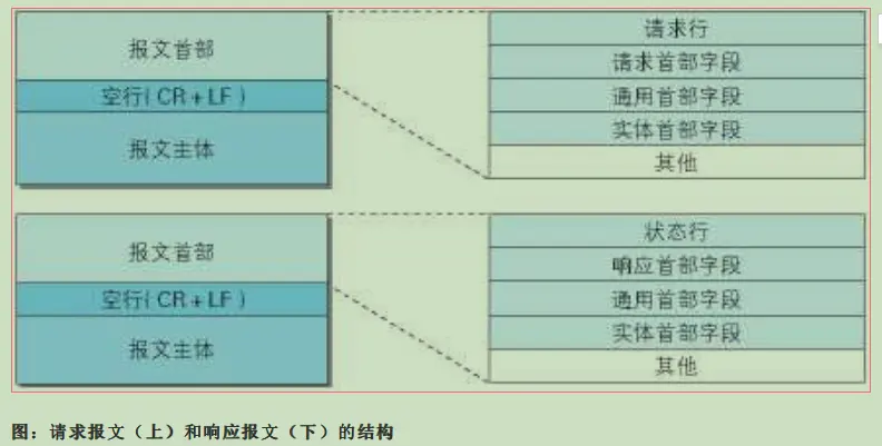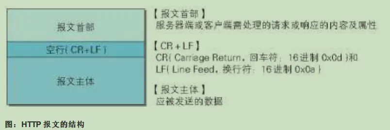 HTTP 报文大致可分为报文首部和报文主体两块。两者由最初出现的空行(CR+LF)来划分。通常,并不一 定要有报文主体