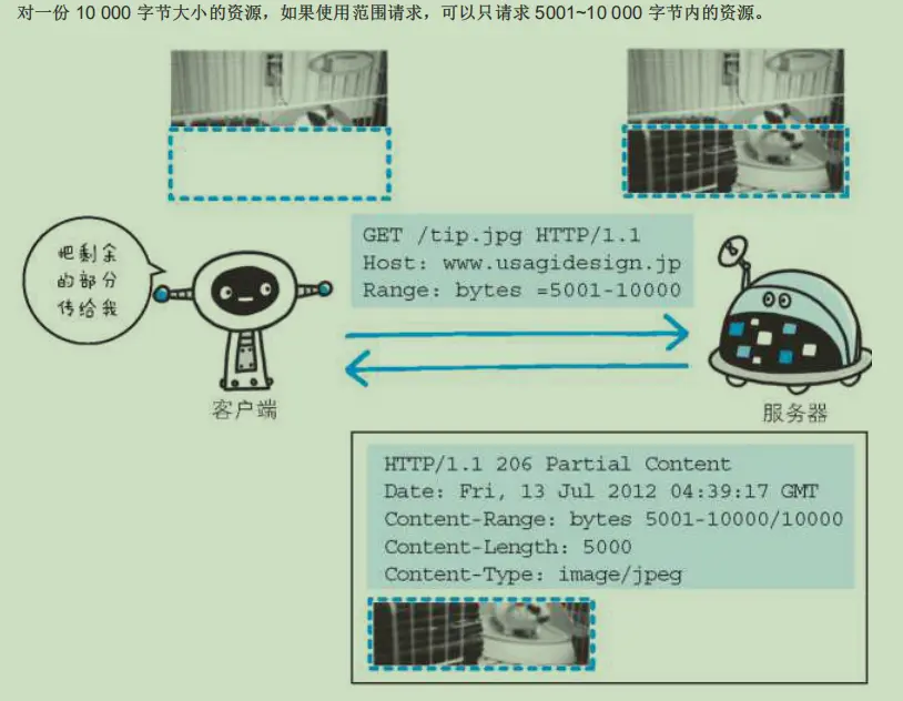 以前,用户不能使用现在这种高速的带宽访问互联网,当时,下载一个尺寸稍大的图片或文件就已经很吃力 了。如果下载过程中遇到网络中断的情况,那就必须重头开始。为了解决上述问题,需要一种可恢复的机 制。所谓恢复是指能从之前下载中断处恢复下载。 要实现该功能需要指定下载的实体范围。像这样,指定范围发送的请求叫做范围请求(Range Request)。