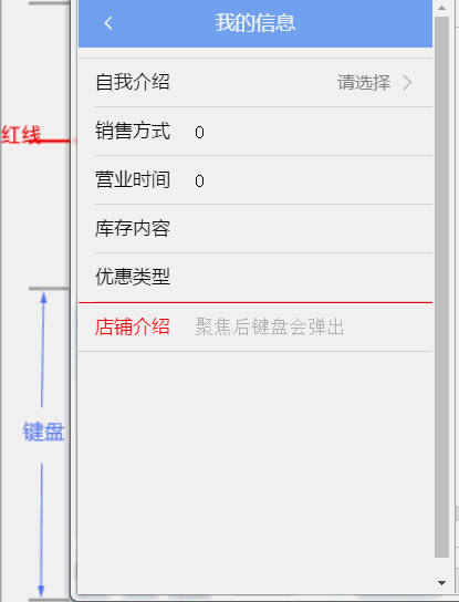 今天遇到了一个问题,在安卓手机上,当我要点击输入“店铺名称”时,手机软键盘弹出来刚好把输入框挡住了;挡住就算了,关键是页面还不能向上滑动,整个手机窗口被压为原来的二分之一左右;