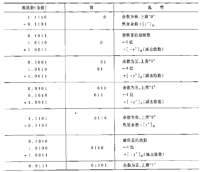 加减交替法也称作不恢复余数法。为啥呢,因为在加减交替法中,先让被除数减除数,如果结果为正,则上1,;如果结果为负,则加上除数。接着将被除数向做移动一位。不过你要是细看的话,这两种方法其实并没有太大的区别,自己好好体会一下就行了。