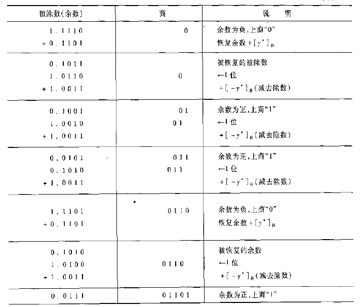 - 例子:x=-0.1011,y=-0.1101,求[x/y]原