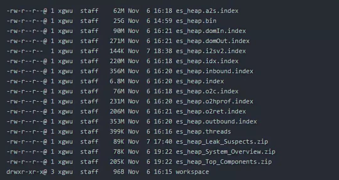 获取二进制的head dump文件 jmap -dump:format=b,file=/tmp/es_heap.bin <pid> 其中pid是ES JAVA进程的进程号。