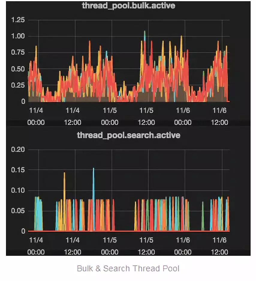 集群的QPS只有30上下,CPU消耗10%都不到,各类thread pool的活动线程数量也都非常低。