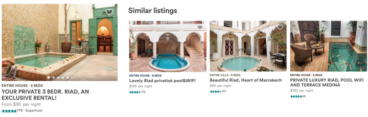每个 Airbnb 房源详情页面都包含一个「相似房源」的轮播,推荐与当前房源相似并且可以在相同时间段内预订的房源。