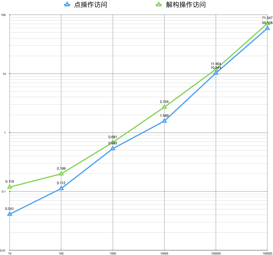 下图是解构操作消耗时间图,纵坐标是对数排列