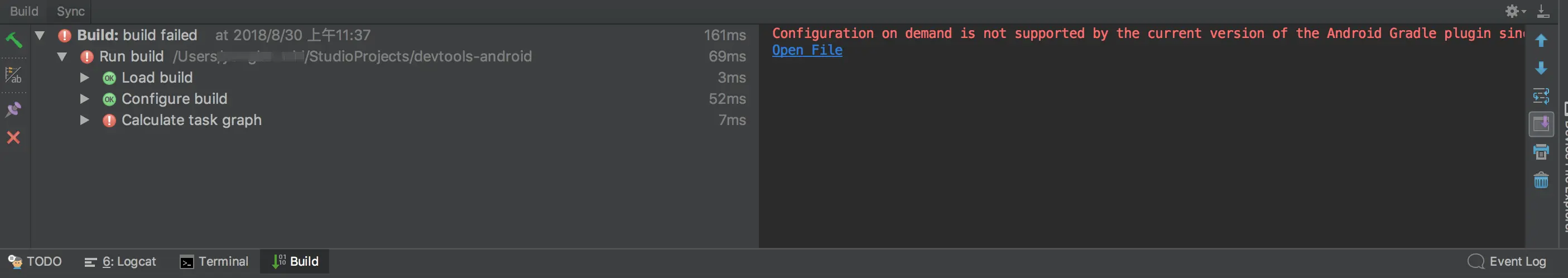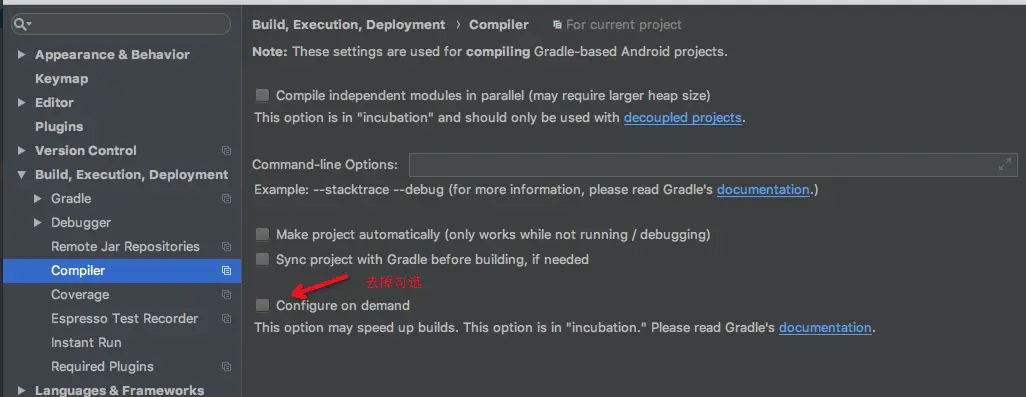 gradle.properties增加org.gradle.configureondemand=false设置 - 使用低于 Gradle 4.6 以下的版本