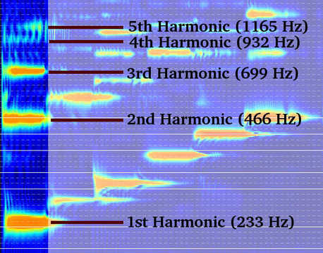 但是音符识别的几个方面比物理图像更具挑战性。 在某些基波频率(如B♭3(233 Hz))中的音符由该基频的倍数处的谐波组成,随着上升幅度逐渐减小。 因此,与大多数物体不同,音符不会局限于输入的单个区域。