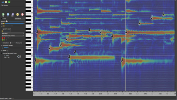 与物理图像不同,来自不同音符的谐波可能会相互干扰。 在照片中,一个物体可以被另一个物体部分隐藏,但前面的物体不会发生任何变形。 不过,音符却会变形。 附近的谐波会导致振幅“跳动”,您可以在上图中的第4次和第5次谐波中看到这种振幅。 音符识别算法需要以某种方式考虑音乐的这些方面。