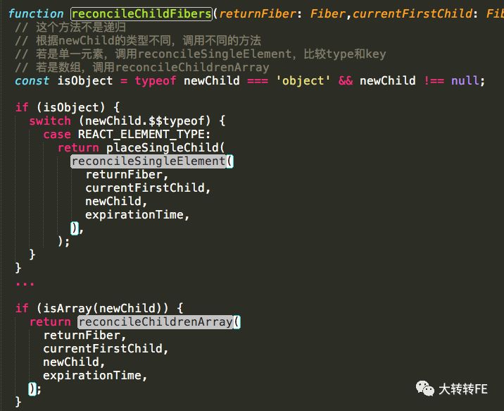 我们再来看下源码中的reconcilation阶段: